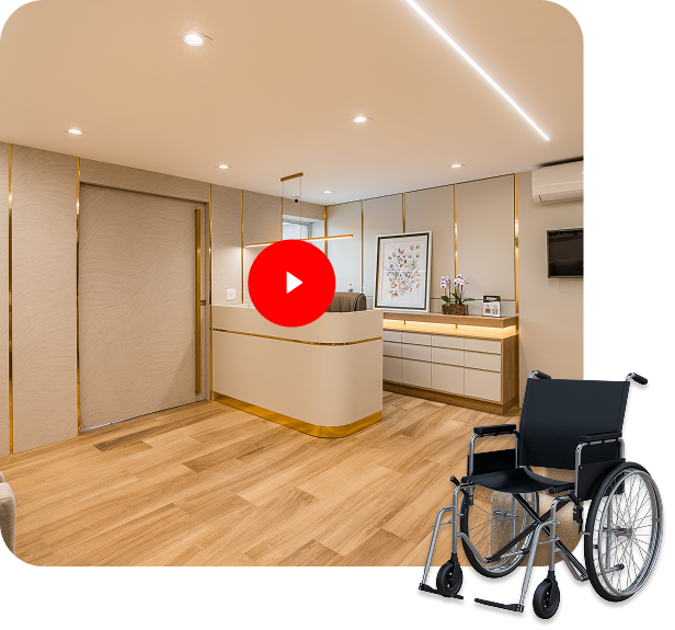 Sabemos que escadas, degraus ou estruturas mal planejadas podem ser um obstáculo para muitos pacientes. Por isso, a clínica foi adaptada com consultórios no térreo e um elevador, que garante autonomia para quem tem mobilidade reduzida, está em recuperação ou simplesmente prefere não subir escadas.